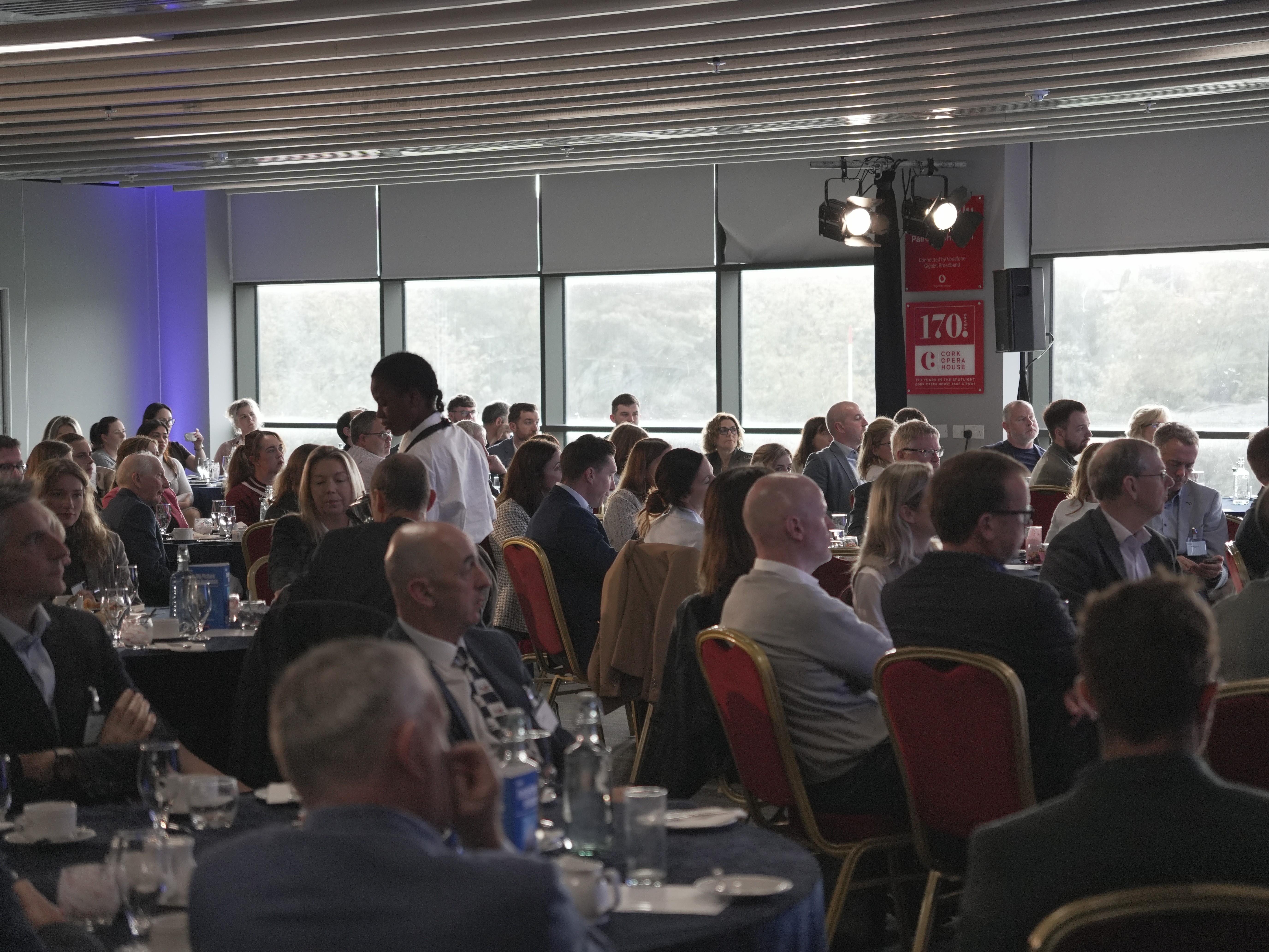 State-of-the-art LED spanning the full width of the stage. Floor to ceiling. For events at this level, the screen isn’t a backdrop — it’s the centrepiece.